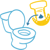 Knock solids into the toilet and rinse off any residue left.